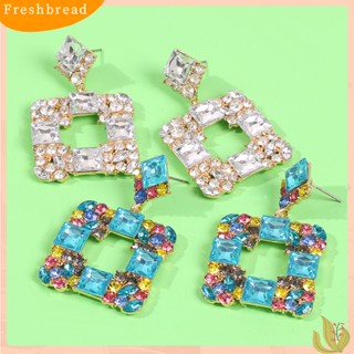 < Freshbread > Wanita Geometris Persegi Multicolor Berlian Imitasi Eardrop Statement Stud Earrings Hadiah