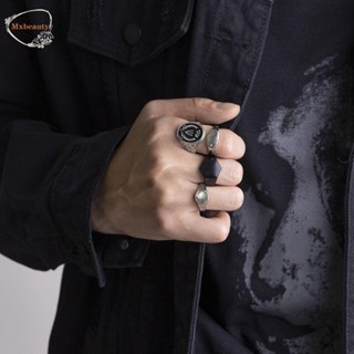 Mxbeauty Pria Set Cincin Geometris Kepribadian Huruf Hexagon Hadiah Ulang Tahun Niche Desain Baja Titanium Gaya Korea Ring