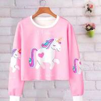 Fourfashion SWEATER WANITA CROP UNICORN I BELIEVE PINKSOFT LONG SLEEVE FF