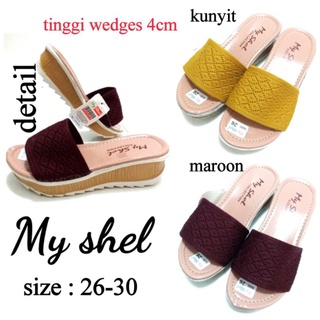 TERBARU SANDAL SELOP WEDGES ANAK SANDAL RAJUT MY SHEL SIZE 26-30 HARGA TERMURAH KUNYIT MAROON