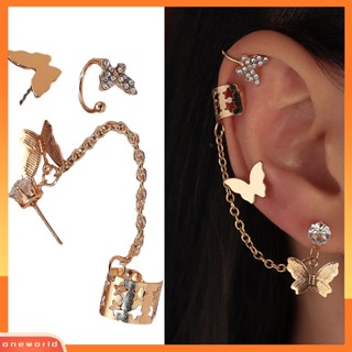 [WOD] Anting Wanita Bentuk Kupu-Kupu Rantai Perhiasan Berlian Imitasi Dekorasi Ear Cuff Stud Earrings Untuk Pakaian Sehari-Hari