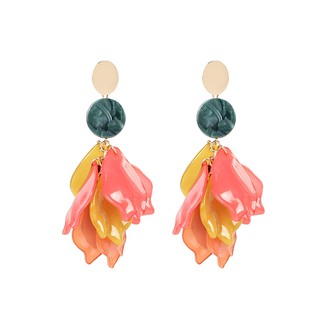 LRC Anting Tusuk Fashion Color Acrylic Petal Long Resin Contrast P09913