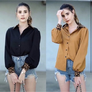 kemeja leopard basic / kemeja lengan balon /kemeja wanita leopard alexa