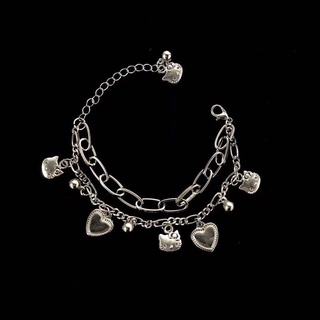 Gelang Dua Lapis Desain Kucing Dan Hati Gaya Jepang Korea