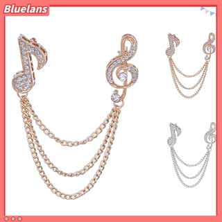 Bluelans Bros Pin Unisex Desain Not Musik Aksen Rantai Rumbai Berlian Imitasi Untuk Kerah / Syal