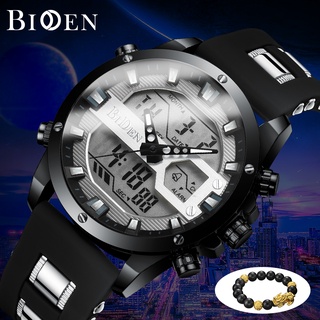 BIDEN Jam Tangan Pria Olahraga Mode Militer Multifungsi Dial Tahan Air Tali Silikon Jam Tangan