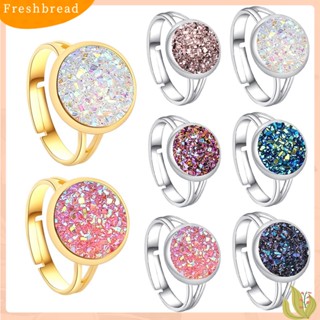 < Freshbread > Fashion Wanita Bulat Pelangi Druzy Terbuka Jari Cincin Adjustable Pesta Perhiasan Hadiah