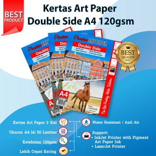 Kertas Art Paper Double Side A4 120gsm Photo Paper 120 gram A4 50 Pcs For Printer Canon Epson HP