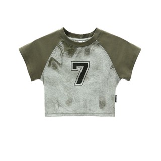Red Kapas Murni Asli Pendek Hijau Militer Amerika Retro Digital Printing Raglan Lengan Pendek T-shirt Wanita Gadis Seksi Bahu Depan in Top