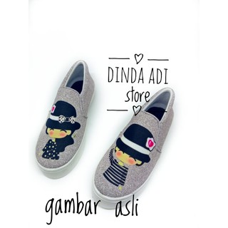 DINDA - SEPATU WANITA SLIP ON COUPLE TEEN PRINTING BEST SELLER MURAH - HITAM