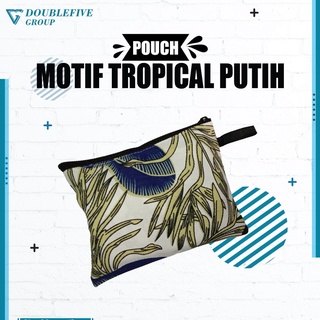 Pouch Kosmetik Souvenir Dompet kanvas Murah uk 20 x 13 Kanvas Motif Tropikal putih
