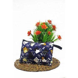 Pouch Kosmetik Souvenir Dompet kanvas Murah uk 20 x 13 Kanvas Motif Kucing navy