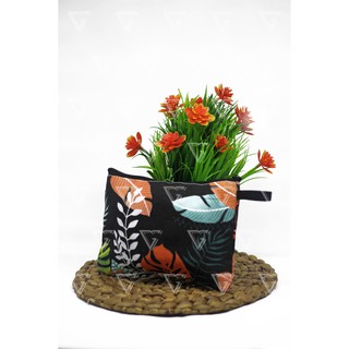 Pouch Kosmetik Souvenir Dompet kanvas Murah uk 20 x 13 Kanvas Motif Tropikal hitam