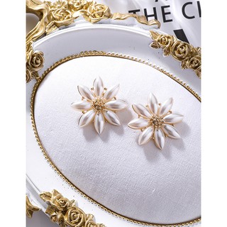 LRC Anting Tusuk Fashion Short Silver Bear Pearl Stud Earrings F76518