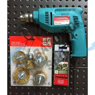 Promo Paket Bor Listrik 10 mm Kenmaster 1 Arah + Sikat Bor 5 Pcs + Mata Bor Besi Drill Bit NLG Murah