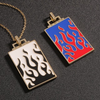 Perhiasan persegi panjang drop minyak api liontin ins gaya dingin wanita kalung perhiasan