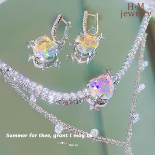 Anting Rantai Klavikula Dua Lapis Bentuk Hati Warna-Warni