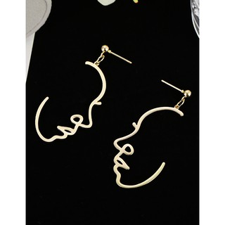 LRC Anting Tusuk Fashion Golden Face Cutout Geometric Earrings D73659