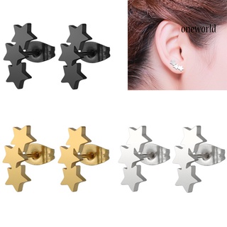 OW@ Chic Triple Star Ear Studs Stainless Steel Earrings Women Piercing Jewelry Charm