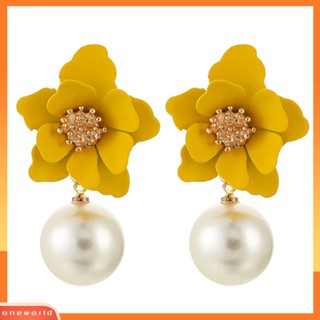 OW@ Elegant Resin Flowers Faux Pearls Women Earrings Ear Studs Dating Party Jewelry