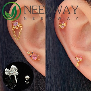 Needway Personality Stud earrings Simple Piercing jewelry Heart cartilage earrings Helix screw Fashion Korean style Temperament Earrings for women Zircon Earbone nail/Multicolor