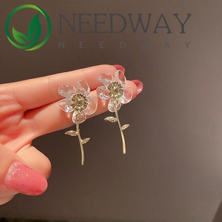 Needway Personality Resin Earrings Trendy Flower Charms Transparent Stud Earrings Women New Sweet Geometric Temperament Acrylic Fashion Jewelry/Multicolor