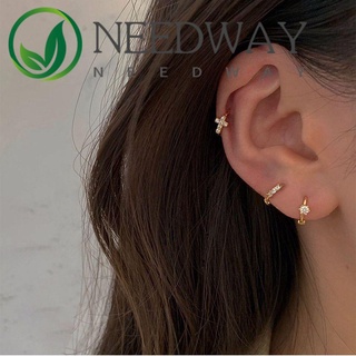 Needway Korean Circle Ear Buckles Simple Cross Ear studs Rhinestone Hoop Earrings Women Round Shape Elegant Sweet Geometric Exquisite Fashion Jewelry