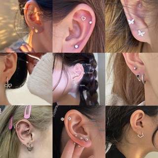 Roselife 1pasang Manis Keren S925 Perak Busur Hati Butterfly Hoop Earrings Untuk Wanita Perempuan Double-ended Round Ball Screw Earring Jewelry