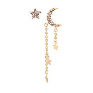 LRC Anting Tusuk Fashion Gold 925 Silver Needle Star Moon Tassel Earrings F46217