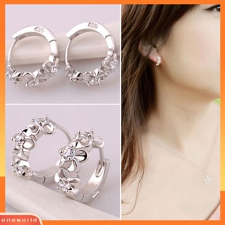 [WOD] Lady Sweet Flower 925 Sterling Silver Disepuh Berlian Imitasi Huggie Earrings Hoops