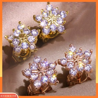1pasang Fashion Snowflake Stud Earrings/Anting Bunga Zirkon Berkilau/Aksesoris Perhiasan Pesta Wanita