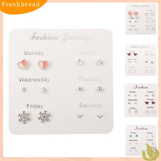 < Freshbread > 6pasang Wanita Snowflake Hati Bintang Daun Permata Imitasi Ear Stud Earrings Perhiasan Hadiah
