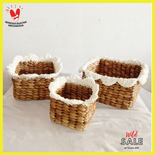 COD - keranjang kotak serbaguna bahan enceng gondok set isi 3 / basket anyaman