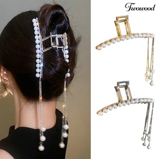 Twowood Hair Claw Clip Desain Mutiara Imitasi Berkilau Mempesona Efek Visual Non-Slip Dengan Rumbai Dress-up Semua Cocok Berlian Imitasi Penjepit Rambut Wanita Hiasan Kepala Dekorasi Untuk Wanita