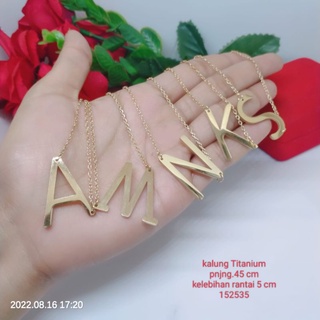 Kalung Inisial Titanium Perhiasan Aksesoris Lapis Emas 18,24 Karat