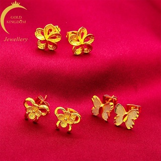 Anting Stud Emas Asli Kadar 375 Desain Bunga Kupu-Kupu Kecil Gaya Korea Untuk Wanita