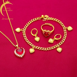 Set Kalung Anting Cincin Desain Hati Ganda Lapis Emas Asli Kadar 375 Untuk Aksesoris Wanita