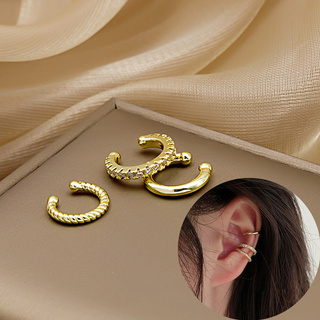 3pcs Anting Klip Tanpa Tindik Lapis Emas Adjustable Untuk Wanita
