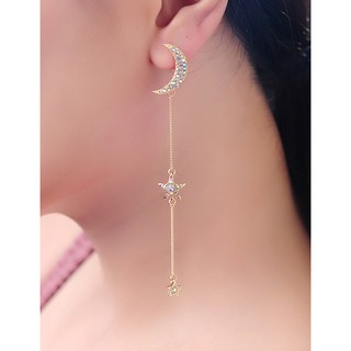 LRC Anting Tusuk Fashion Xingyue Earrings Crystal Diamond S925 Sterling Silver Star Moon Asymmetric