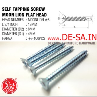 100 x Moon Lion Skrup #8 x 19MM - Self Tapping Flat Head Screw (Skrup Lion #8 X 3/4")