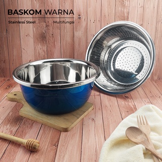 Baskom Warna 22cm 24cm Random Multi Fungsi Cuci Sayur Wadah Makanan Mixing Adonan Stainless