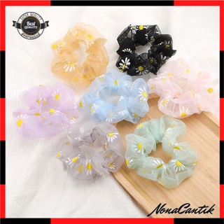 Scrunchie Bahan Sifon Motif Bunga Daisy Premium / Ikat Rambut Sifon Korea / Mesh Scrunchie / Tiki