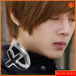 [Ready Stock]Men's Silver Black Cross Earrings Fashion Personality