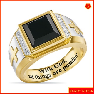 [Ready Stock]Men's Fashion Personality Cross Black Agate Ring