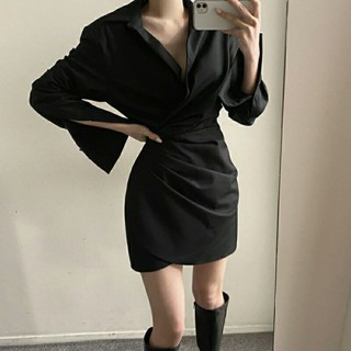 Red Temperamen pinggang longgar dan rok kemeja tipis wanita tas lipit rok tidak beraturan gaun fashion