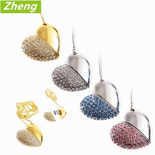 Flashdisk USB 1TB Portable Bentuk Hati dengan Kristal + Rantai Kalung untuk Hadiah Bisnis