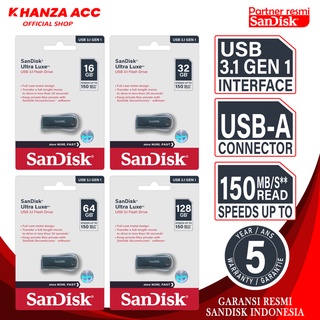 KHANZAACC SANDISK ULTRA LUXE Flashdisk 16GB 32GB 64GB 128GB USB 3.1 ORI
