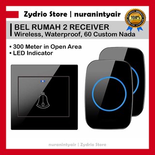 Bel Rumah Wireless 2 Receiver Waterproof / Bel Pintu Pagar Tanpa Kabel
