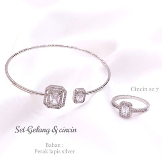 Set Gelang Cincin Premium Silver925 Perak Mata kilau Free size model Udjust Set zircone Premium Quality Anti karat anti alergi Gs938