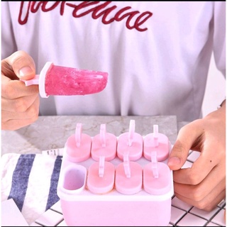 Cetakan Es Krim mold Es Loli DIY 8 Kompartemen Cetakan Es Batu Silikon Penutup 8 Kotak Ice Cube Tray Cetakan Es Batu Cetakan Es Krim Stik Loli Lolipop Popsicle Stick Ice Cream